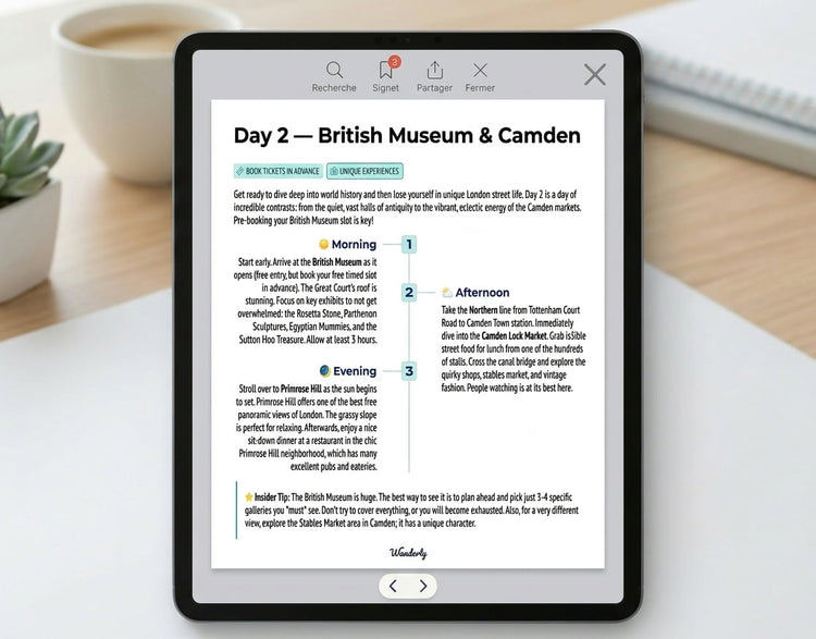 Free itineraries are written for everyone — which means they're optimized for no one. They don't know you're arriving jet-lagged from LA at 7 AM, that you're navigating the Tube for the first time, or that you have 5 specific days to make count. This one does. Every route, every timing, every restaurant pick was built specifically for long-haul travelers from the US, Canada and Australia. You could spend 10 hours building this yourself. Or $27.